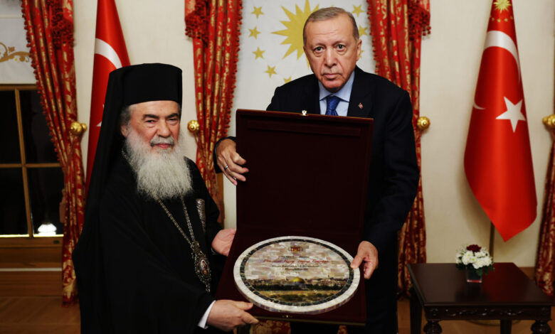 Cumhurbaşkanı Recep Tayyip Erdoğan, Kudüs Rum Ortodoks Patriği Theofilos Giannopoulos’u İstanbul’da kabul etti.