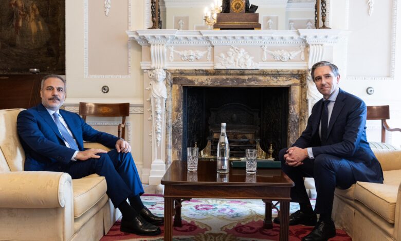 Dışişleri Bakanı Hakan Fidan, resmi ziyaret kapsamında bulunduğu İrlanda’nın başkenti Dublin’de temaslarda bulundu. Fidan, burada Başbakan Yardımcısı ve Dışişleri, Ticaret ile Savunma Bakanı Simon Harris ile bir araya geldi. Görüşmede iki ülke arasındaki diplomatik ilişkiler ve iş birliği konuları ele alındı.